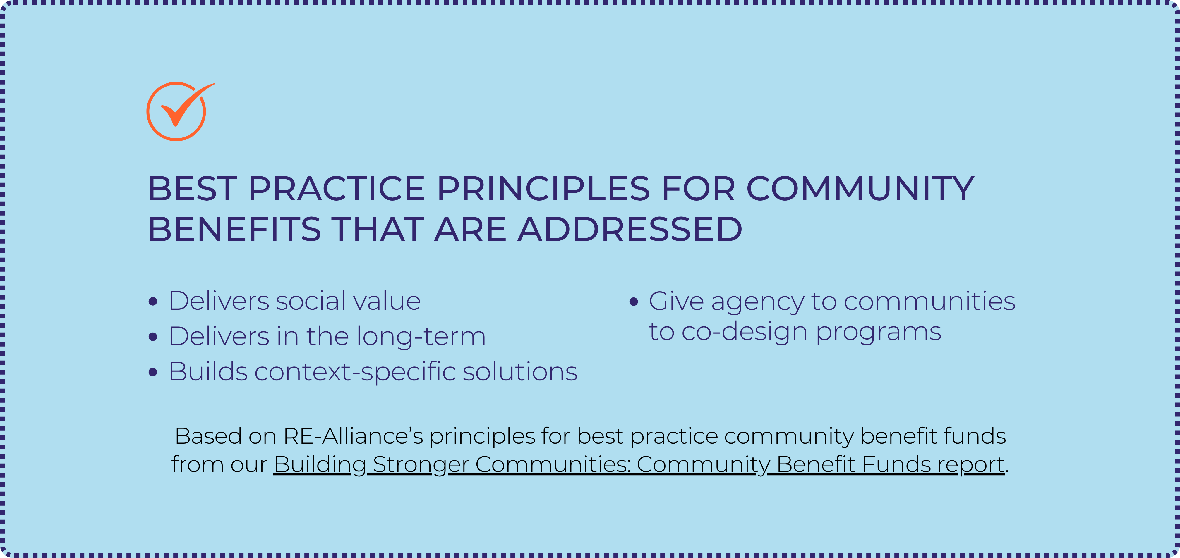 This example demonstrates the value a Community Benefit Plan can deliver to communities, if it is developed by listening closely to community feedback and thinking creatively about how to address local needs. It requires a willingness from companies to enter into longer-term partnerships and to provide greater funding for strategically important projects.